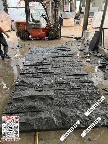長(zhǎng)泰芝麻黑自然面背景墻蘑菇石劈裂石長(zhǎng)泰654小方塊